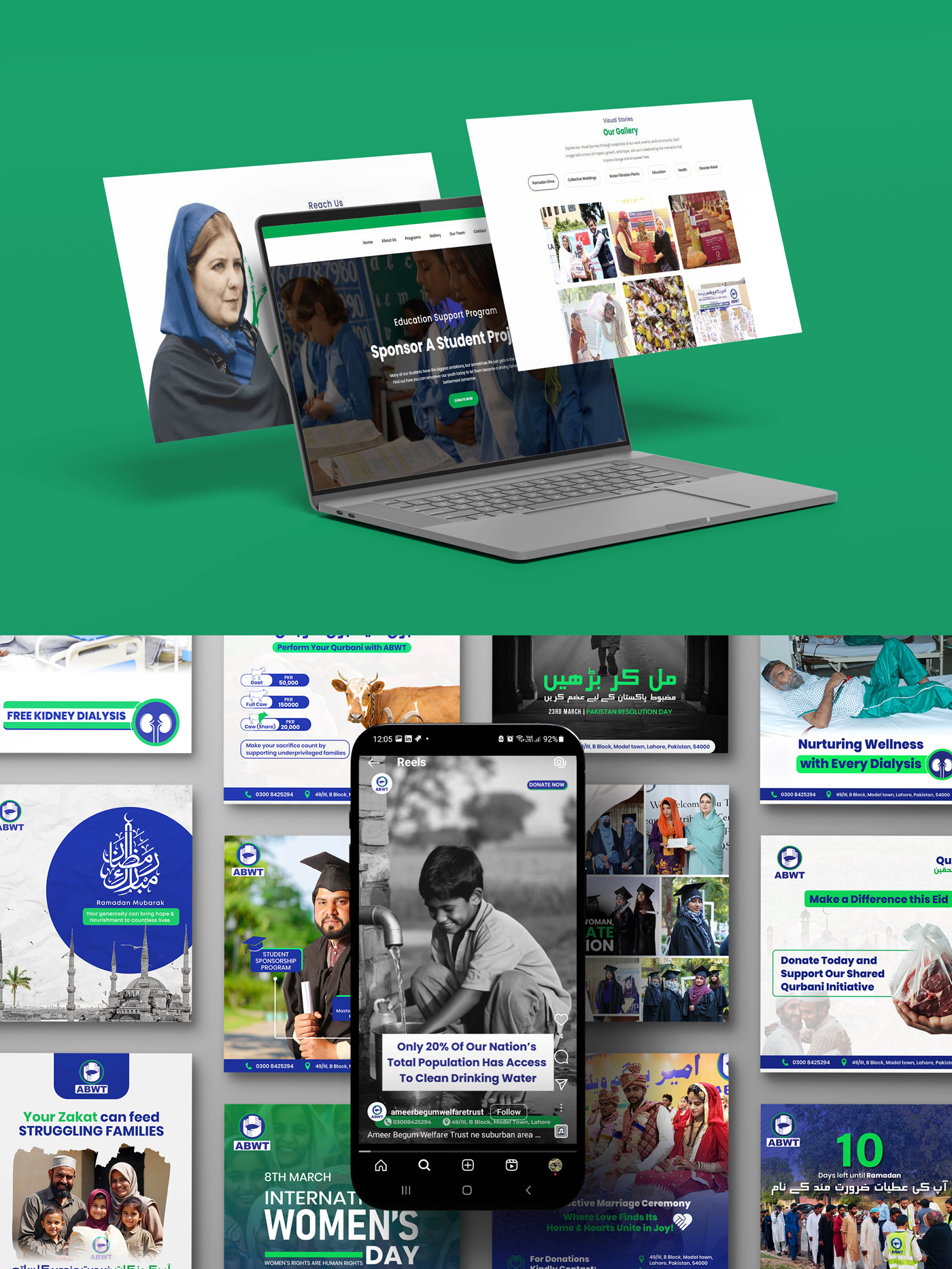 Ameer Begum Welfare Trust is dedicated to empowering underprivileged communities through education, healthcare, and social support initiatives. Typespace Studios supports their mission by providing creative solutions, including website design, social media management, branding, and print collateral, helping them amplify their impact.
